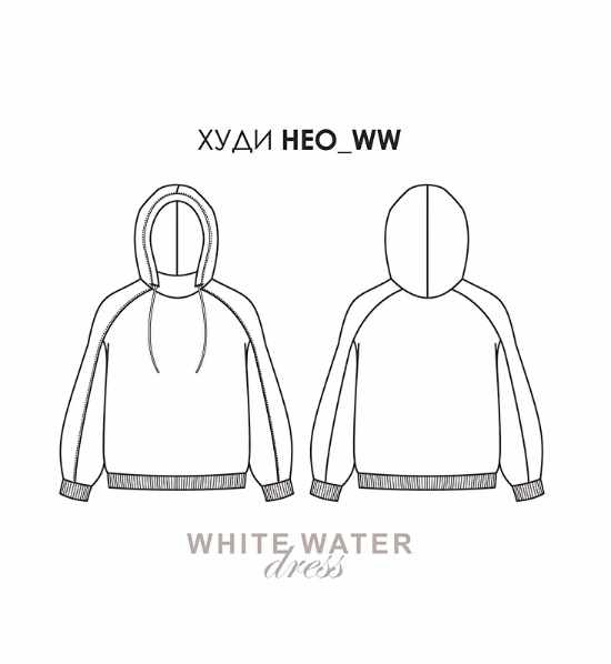 Выкройка худи с комбинированный рукав реглан, капюшон с втачной кулиской и горловиной стойкой.